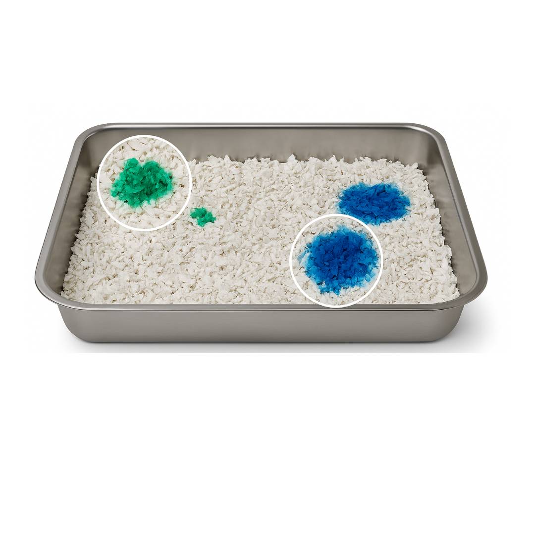 - Alkalischer Urin (hoher pH-Wert) – bei Verwendung von Bastet erkennst du das an blauen Verfärbungen in der Streu